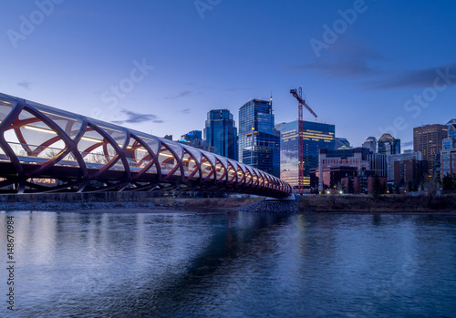 © Jeff Whyte, Naklejka premium Calgary's skyline along the Bow River at sunrise.