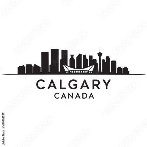© firoz, Fototapeta premium Calgary skyline horizontal banner. Black Calgary, Canada. Vector template for your design. Vector black silhouette. with white background