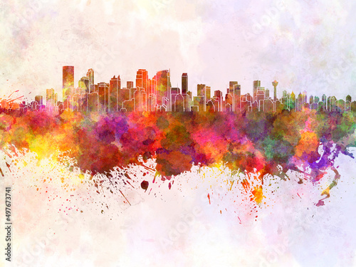 Fototapeta premium Calgary skyline in watercolor background