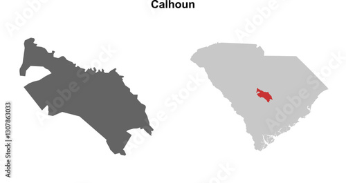 Fototapeta premium Calhoun County (South Carolina) blank outline map set