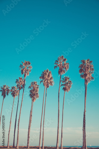 © ellensmile, Obraz premium California high palms on the beach, blue sky background