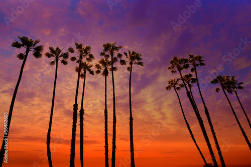 © lunamarina, Obraz premium California palm trees sunset with colorful sky