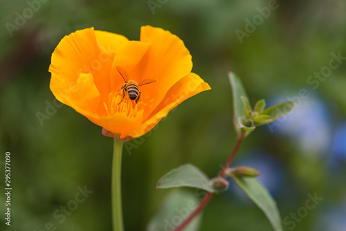 © Doghouse Wildlife, Fototapeta premium California Poppy visited by a Honey Bee