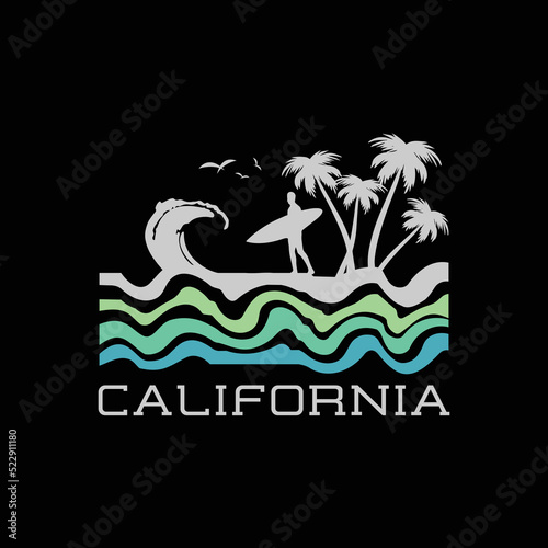 Naklejka premium California surfing illustration t-shirt and apparel design