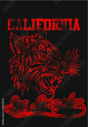 © a1vector, Fototapeta premium California Tattoo tribal tiger embroidery graphic design vector art