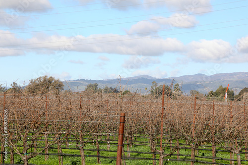 © Ronald, Fototapeta premium California vineyards in winter with mountains and cloudy sky