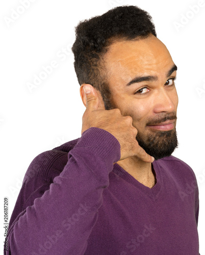 © fotofabrika, Obraz premium Call center. Man showing call sign. Business people concept