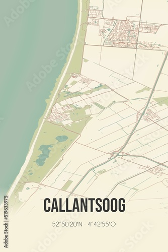 © Rezona, Fototapeta premium Callantsoog, Noord-Holland vintage street map. Retro Dutch city plan.