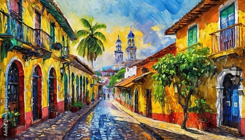 © eduardo, Fototapeta premium Calles coloniales cartagena de indias colombia acuarela