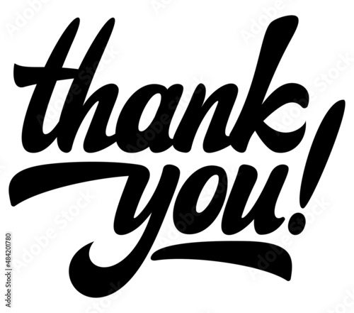 © 111chemodan111, Obraz premium Calligraphic inscription - Thank you. Lettering. Vector monochrome illustration. White background. Black text