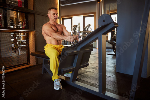 © Svitlana, Naklejka premium Calm adult man doing his regular workout at the gym