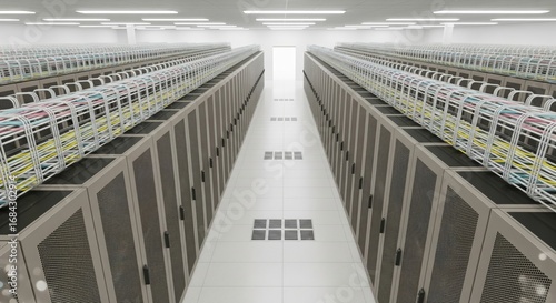 © Tuwaeteemoh, Fototapeta premium Calm Aisle: Pastel Cables and Taupe Racks from Above