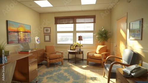 Fototapeta premium Calm and Professional Therapy Office with Comfortable Seating and Cozy Decor...
