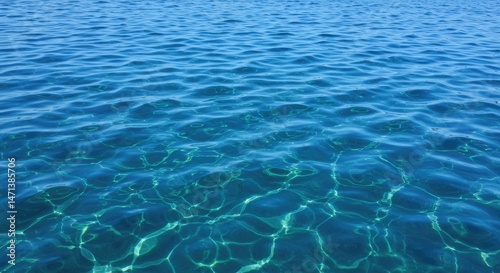 Obraz premium Calm, azure water surface with sunlit ripples. Gentle waves, transparent,...