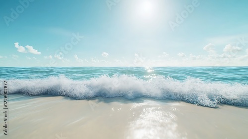 Fototapeta premium Calm beach with golden sands and gentle waves under the sunny sky