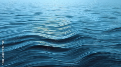 Naklejka premium Calm Blue Ocean Surface with Gentle Waves Reflecting Light in a Serene...