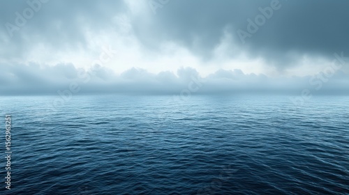 Obraz premium Calm blue ocean under a cloudy, overcast sky