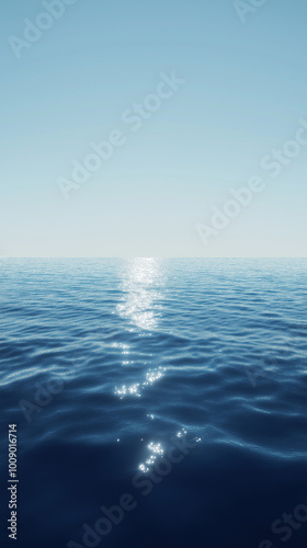 © Lara, Fototapeta premium Calm Blue Ocean Waves and Clear Sky with Copy Space