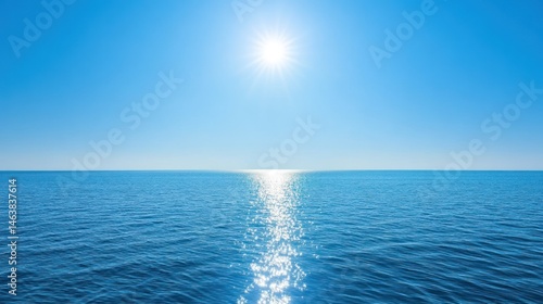 Obraz premium Calm blue ocean with sun reflection