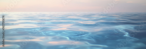 Obraz premium Calm, blue water ripples gently under a soft, pink sky.