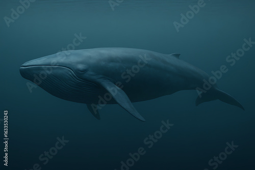 Obraz premium Calm Blue Whale Gliding Through the Deep Blue Sea