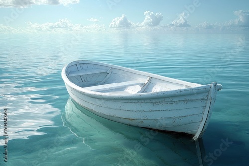 Naklejka premium Calm boat floating on crystal clear water tropical paradise nature scene...