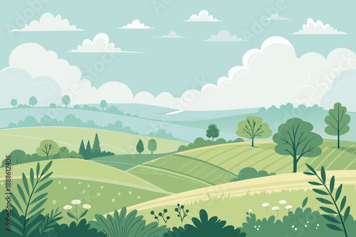 © adobe1 stock, Fototapeta premium Calm Countryside With Fields And Cloud High-Quality Stock Image Suitable for Design