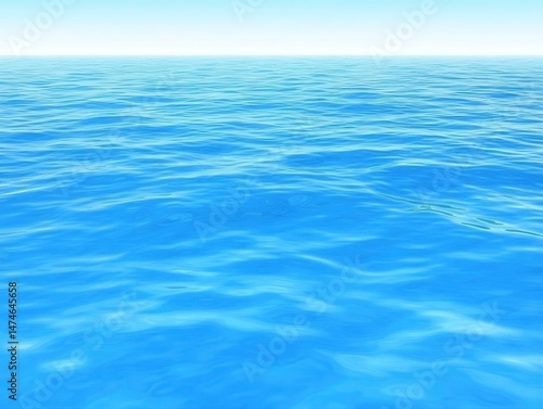 Naklejka premium Calm, deep blue ocean surface, with gentle waves. Clear sky visible above. Detailed, realistic depiction of water
