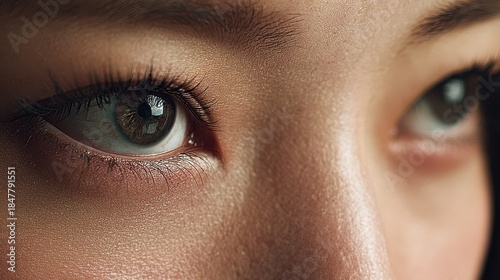 © Maryna, Fototapeta premium Calm gaze: close-up of Asian eyes with natural skin tone and subtle makeup