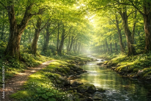 © pngking, Obraz premium Calm Green Forest Environment with Bright Leafy Canopy