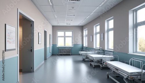 Fototapeta premium Calm Infirmary: Empty Wall Division in Hospital Setting, Fostering Neutral...