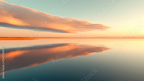 © MAKASIHMAS SIDNEY, Obraz premium Calm lake sunset reflection, peaceful evening sky, nature background, ideal for relaxation
