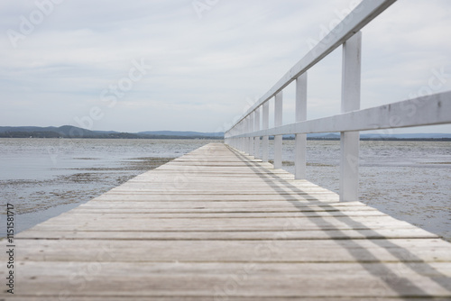 Fototapeta premium calm lake water pontoon jetty pontoon long sail row