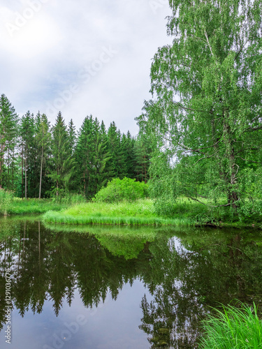 © Sergei, Fototapeta premium Calm lake with a tree in the background