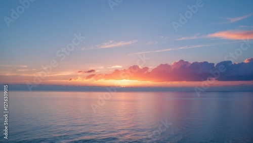 Fototapeta premium calm ocean at sunset with soft waves and colorful sky reflected on water surface