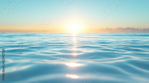 Fototapeta premium Calm ocean sunrise, gentle waves, tranquil sky