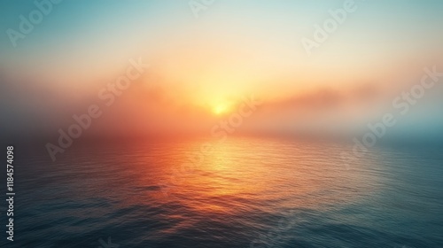 © RONNY, Fototapeta premium Calm ocean sunrise with fog.