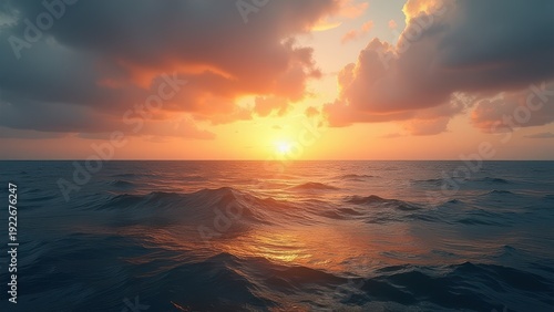 © rahwik, Obraz premium Calm Ocean Surface at Sunset Moody Nautical Travel Background