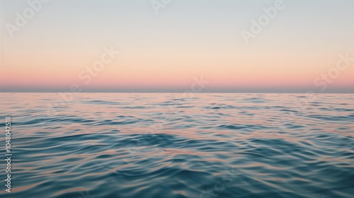 © Imsuniyah, Fototapeta premium Calm Ocean Water with Pink Sunset Reflection
