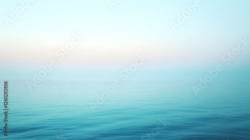 Obraz premium Calm ocean waters meet a soft pastel colored misty sky
