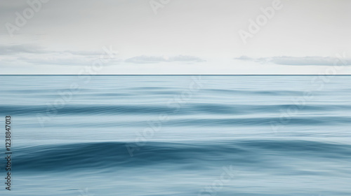 Fototapeta premium Calm ocean waves under a cloudy sky; serene seascape for travel brochure