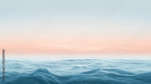 Fototapeta premium Calm Ocean Waves Under Soft Blue Sky at Dawn