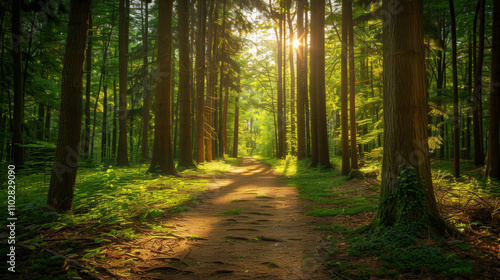 © I-D-U, Obraz premium Calm Path in the Sunlit Forest