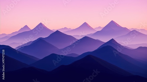 Naklejka premium Calm Polygonal Picture of Lavender Mountains under Soft Pink Sky