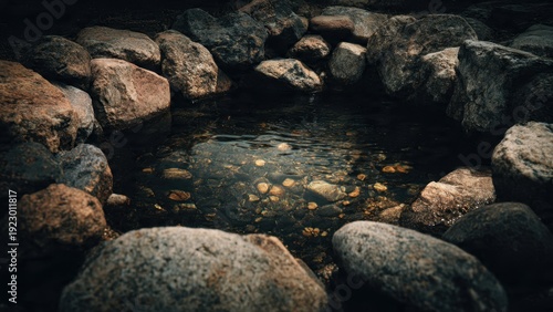 Obraz premium Calm Pond Surrounded by Rocks