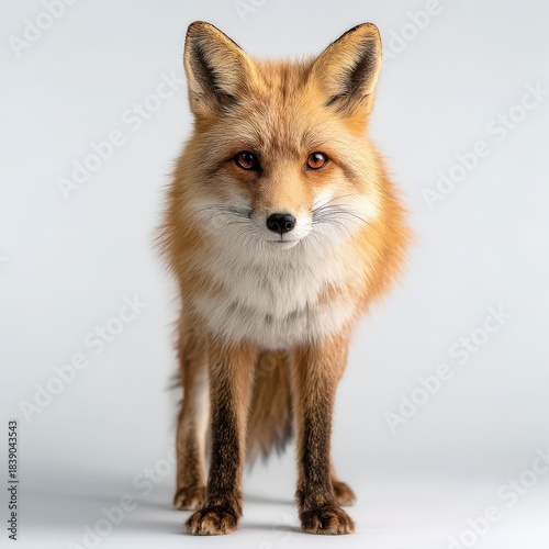 Fototapeta premium Calm red fox portrait in a bright white studio setting