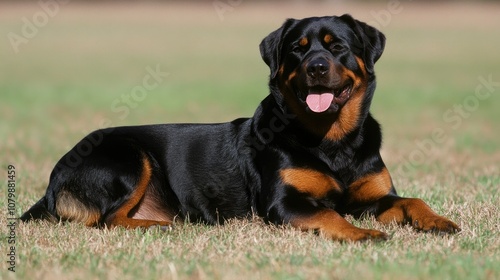 © DREAMERLYN STUDIO, Obraz premium Calm Rottweiler in park, challenging misconceptions