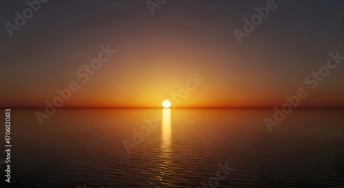 Naklejka premium Calm Sea at Sunset with Sun Reflection
