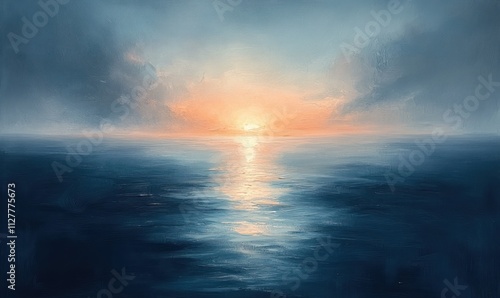 © littlekid, Fototapeta premium Calm Sea Pastel Sky Abstract Background for Design and Presentation