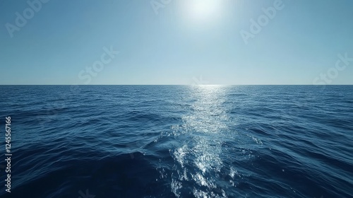 Fototapeta premium calm sea surface patterns, infinite blue expanse, delicate water movements, peaceful oceanic mood, subtle wave textures, minimal horizon composition, dreamy marine atmosphere